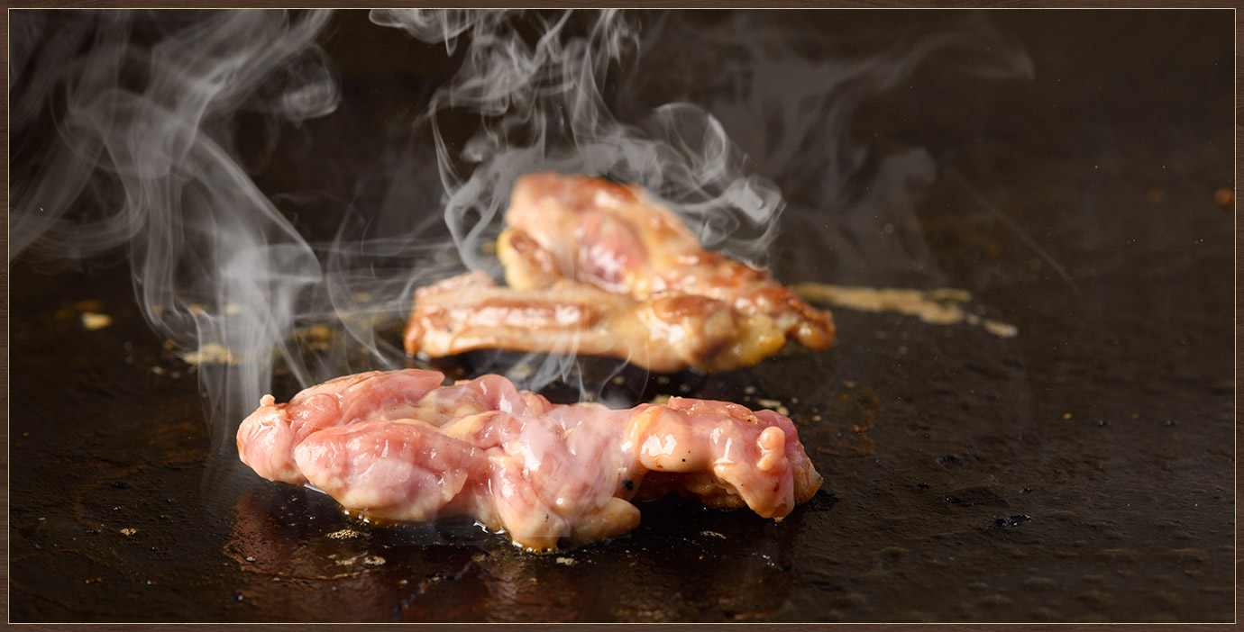 当店が陶板焼に使用する鶏肉は、あえて銘柄を限定しません。例えば、徳島の「地養赤鶏」や「阿波尾鶏」といった地鶏・銘柄鶏など、その時期や季節に美味しいと判断した鶏を、鮮度にこだわって仕入れております。旨味の詰まった肉質は格別な美味しさを感じていただけるはずです。部位も豊富に揃えており、ソリレスやスジミといった希少なものは、ぜひ食べ比べていただきたい逸品です。